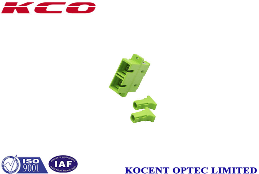 Adaptor Serat Optik Hijau SC/APC Dengan Flange, Dengan Dust Cap, Duplex